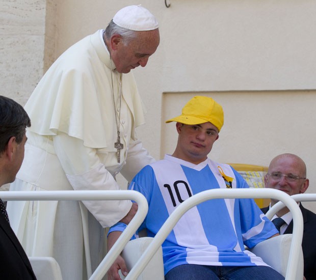 O papa Francisco deixou nesta quarta-feira (1) que um jovem com deficiência mental torcedor e fã do jogador Messi subisse no papamóvel ao final da audiência-geral na Praça de São Pedro. O adolescente, que vestia a camisa da seleção da Argentina com o número 10 de Messi, recebeu uma carinhosa saudação do Papa e pediu a Francisco que o deixasse entrar no carro. Espontâneo como sempre, o Papa permitiu que o rapaz subisse no veículo e sentasse em sua cadeira, sob os aplausos da multidão que assistia a audiência. Respeito à vida. Francisco fez nesta quarta um chamado para que a humanidade respeite a vida "em todas suas fases e em todas suas dimensões". Diante de cerca de 70.000 mil pessoas que assistiram na praça de São Pedro, no Vaticano, a audiência pública das quartas-feiras, o Bispo de Roma lembrou que no fim de semana passado, lembrando o Ano da Fé, a Igreja celebrou a jornada da vida (Evangelium Vitae) e ressaltou que Deus "é a vida e fonte de vida". "Mais uma vez quero fazer uma chamada a todos para que acolham o Evangelho da vida e que promovam e defendam a vida em todas suas dimensões e em todas suas fases. O cristão que diz sim à vida, diz sim a Deus, o vivente", afirmou o pontífice.